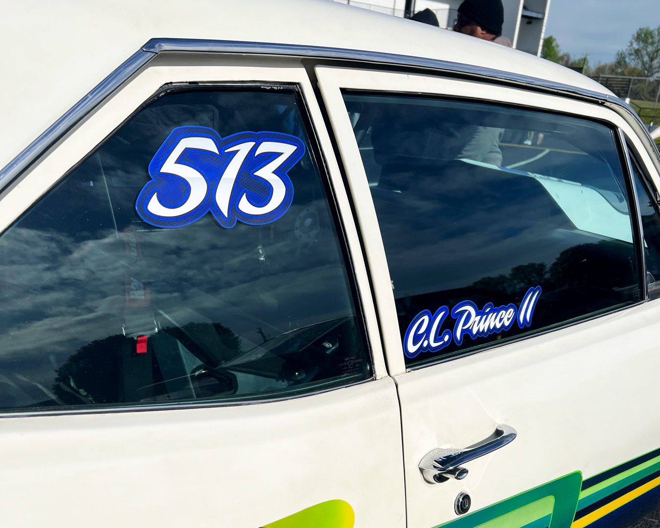 Our number decal kits are printed on premium vehicle wrap vinyl with matching premium overlaminates. They are made to last for years on the windows of your race car.