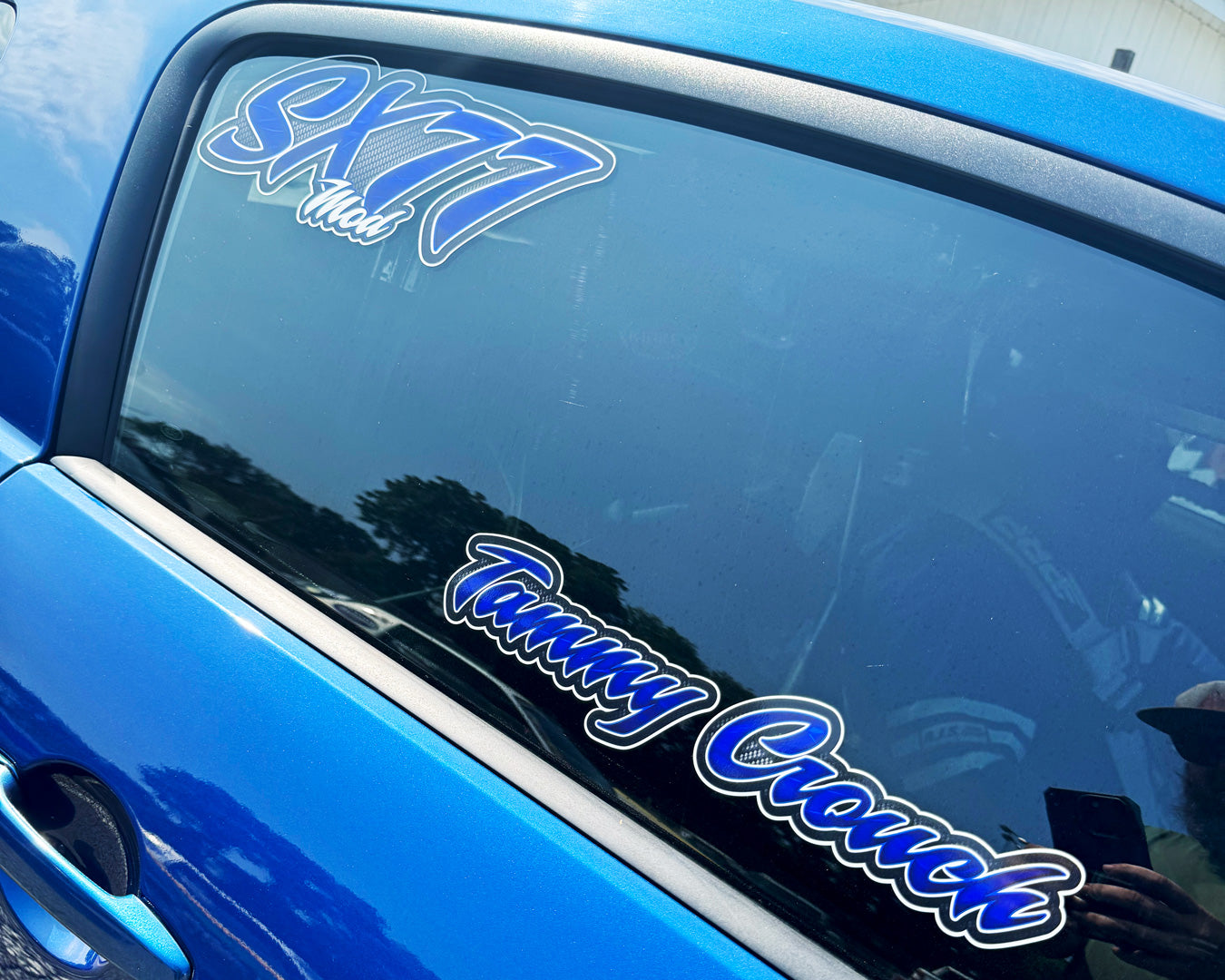 Please specify your specific size/dimension requirements. The maximum sizing for numbers is 8" x 20" and names is 3" x 20". These sets are designed to be car number and driver name for drag racing car windows. If you only specify one dimension your numbers will be sized to the specified dimension and names will be standard size.
